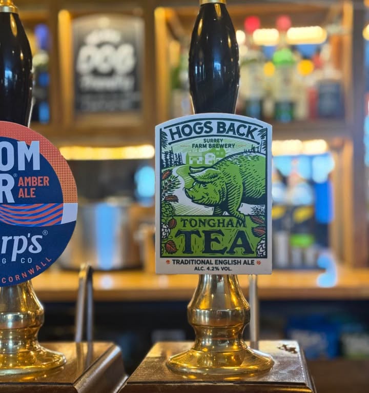 Hogs Back is back 🍻 Our much-loved local brew Tongham Tea from Hogs Back Brewery has made a triumphant return to the bar! This smooth, golden ale is a proper countryside classic – easy-drinking, full of flavour, and just right for a relaxed pint by the fire, or in the sunshine if we’re lucky ☀️ Join us for a pint and raise a glass to local favourites done right 🍺 #hogsbackisback #localale #guestale #hogsbackbrewery #caskale